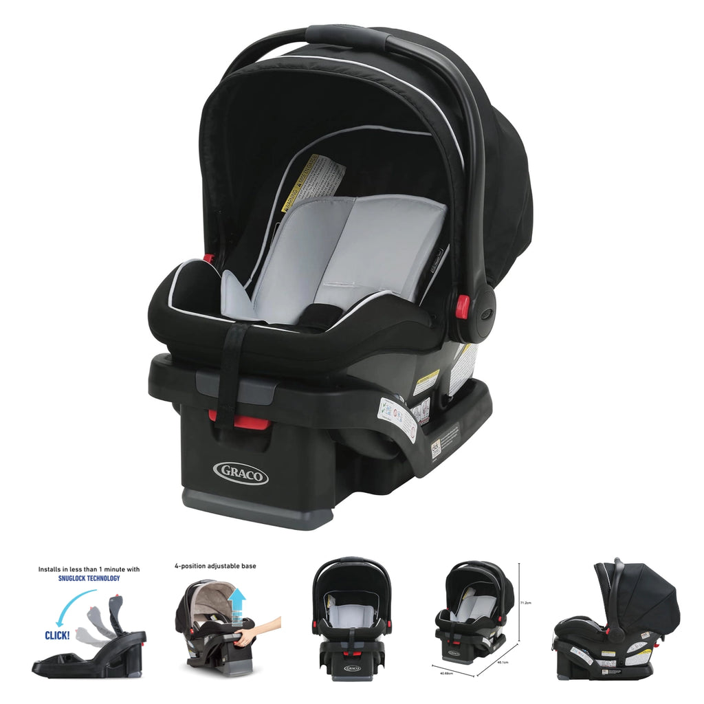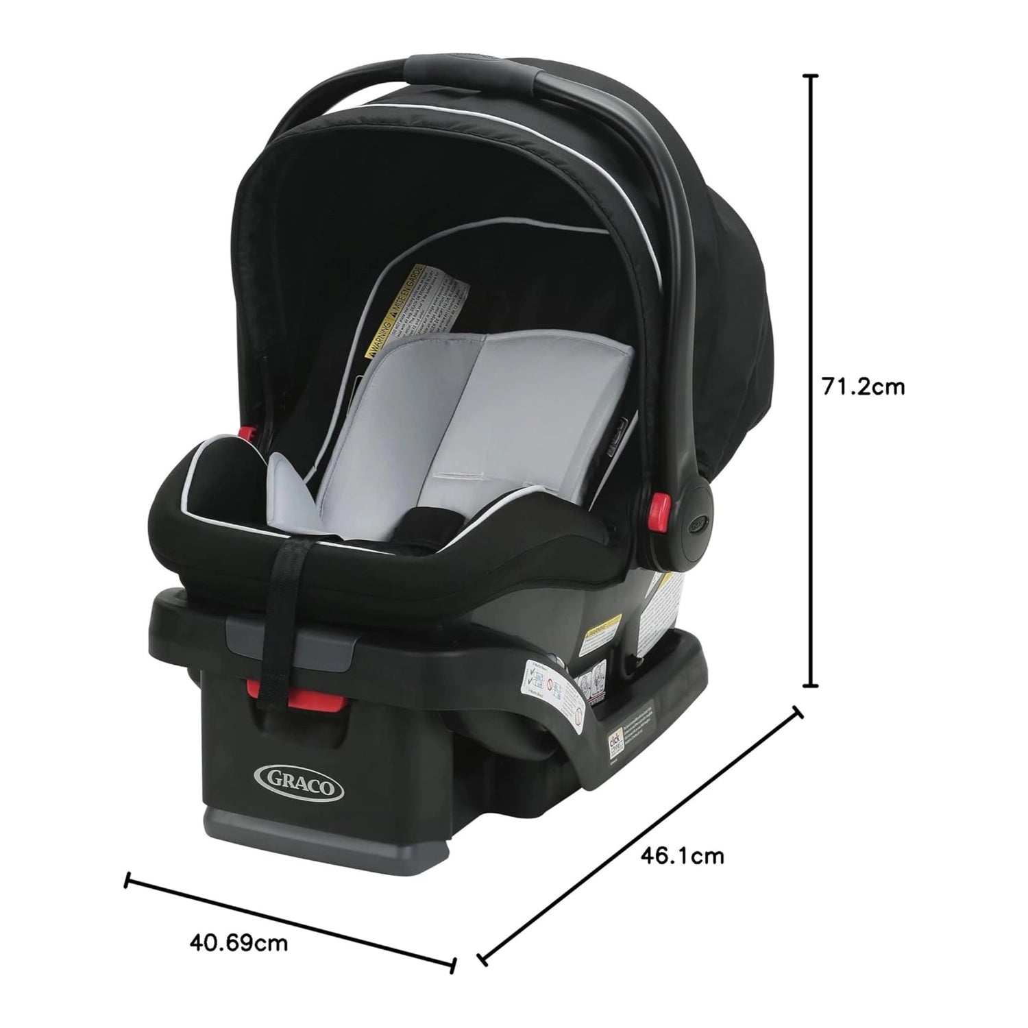 The included Graco SnugRide SnugLock 35 Infant Car Seat – Weston is engineered for infants from 1.8 to 16 kg (4 to 35 lb) and up to 81 cm (32 in) tall. With Click Connect™ technology, it offers a secure one-step attachment to compatible strollers and bases. Its compact build ensures easy portability, with overall dimensions of 71.12 cm (L) × 44.45 cm (W) × 35.56 cm (H) and a lightweight frame at just 7.49 kg. Designed for superior safety and user convenience, this seat ensures a seamless fit into your daily mobility routine.