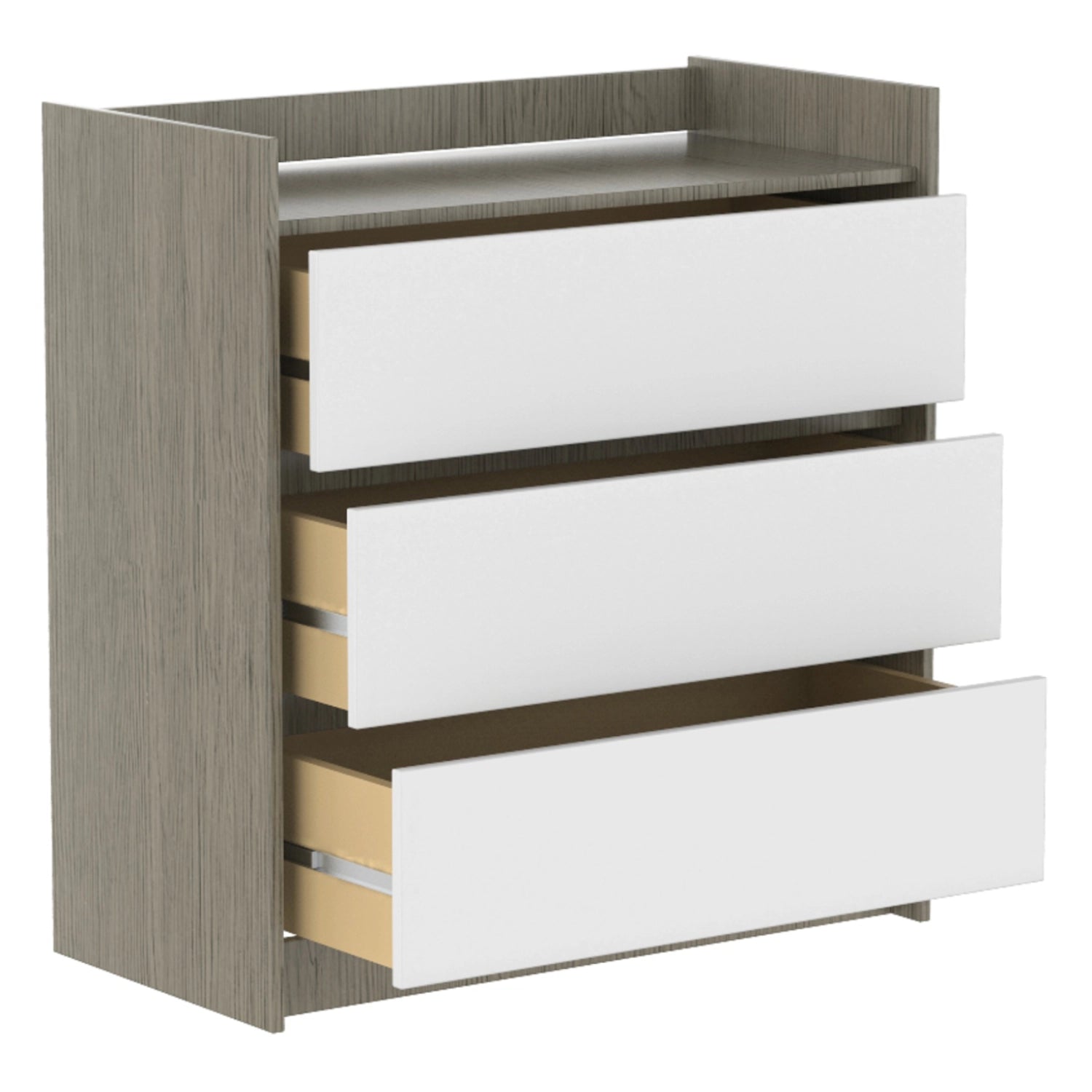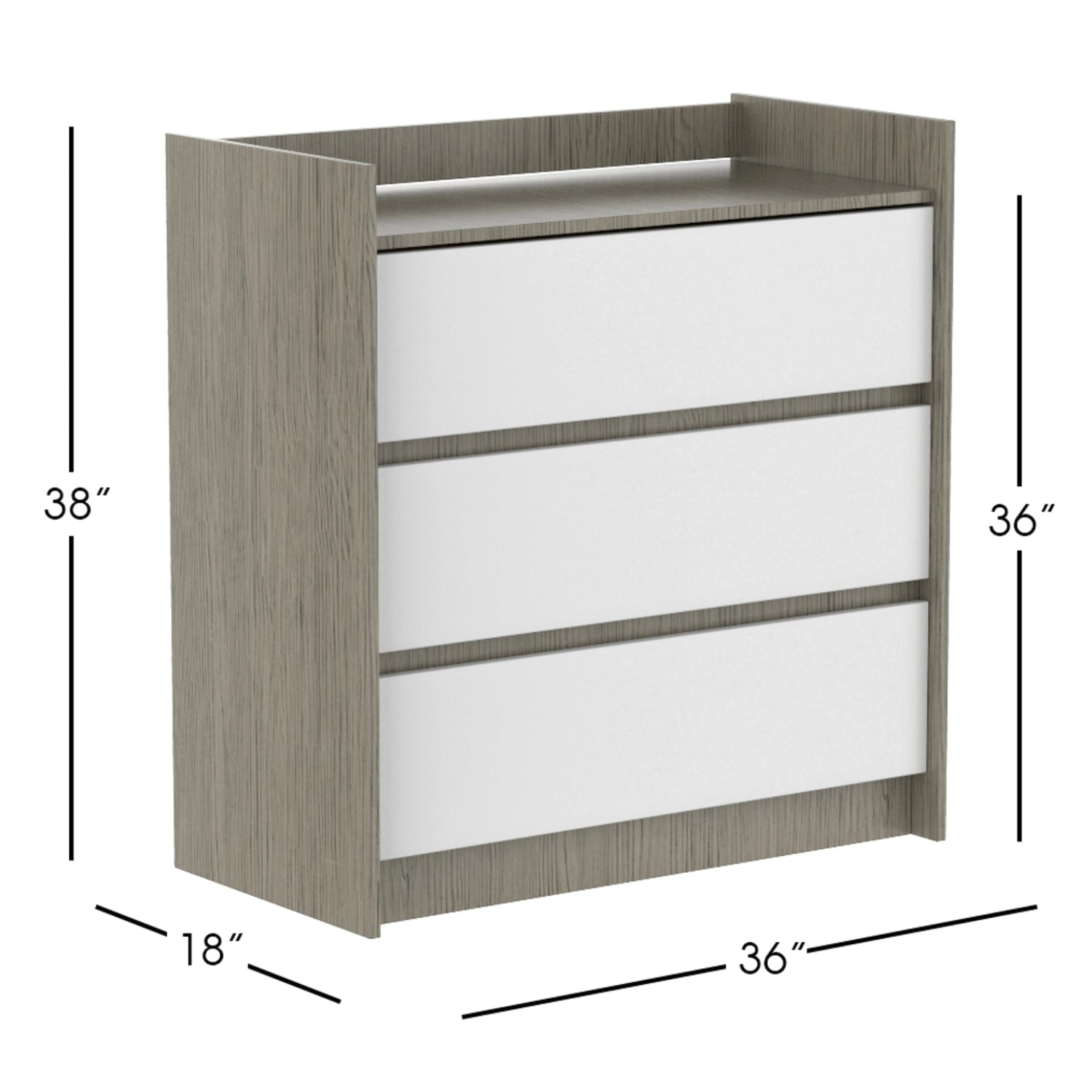 The Alex Changing Table boasts a spacious table top that accommodates any standard changing pad, providing a secure and comfortable space for your little one. The three (3) storage drawers below offer convenience, ensuring quick access to essentials such as pajamas and diapers. This thoughtful design caters to the practical needs of parents while maintaining an aesthetic appeal.