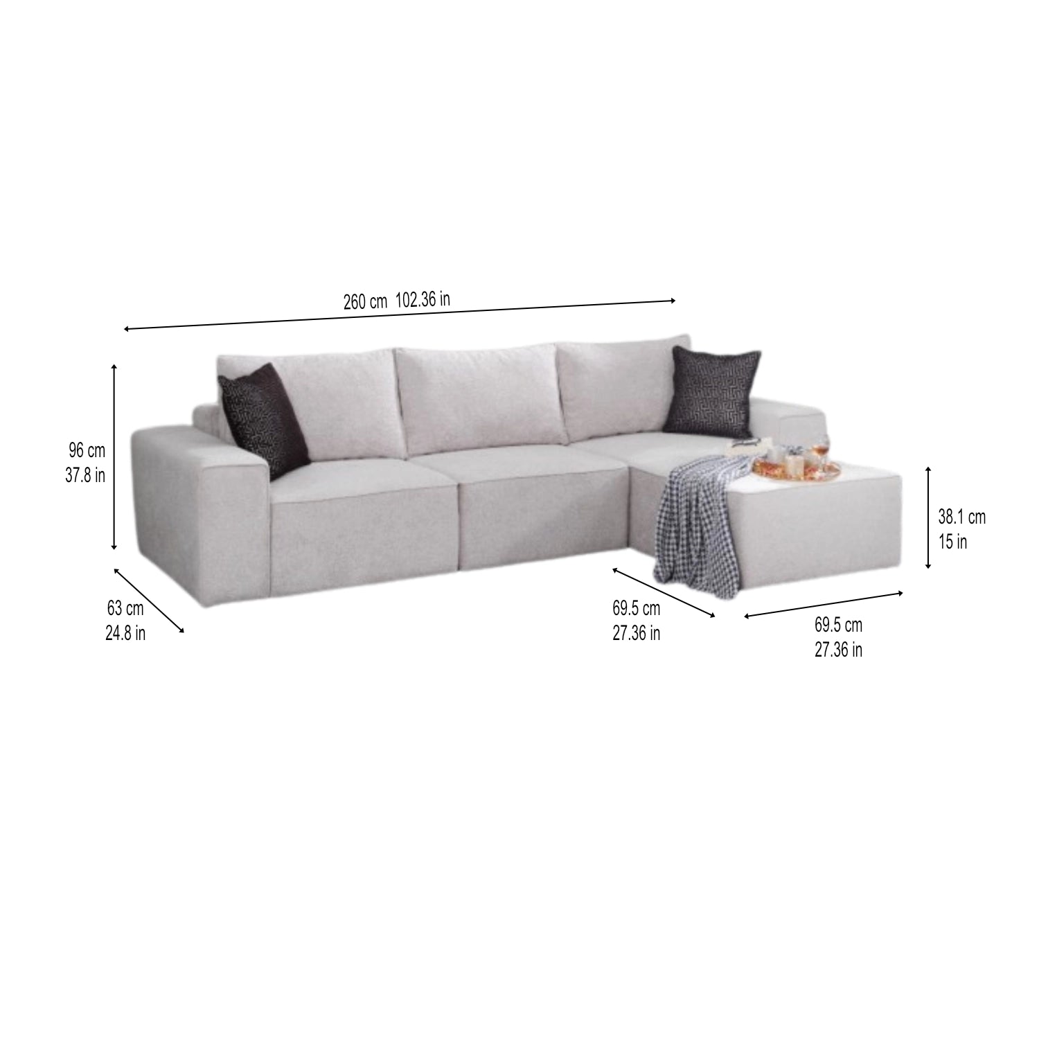 Chaise module width: 69.5 cm / 27.36 in